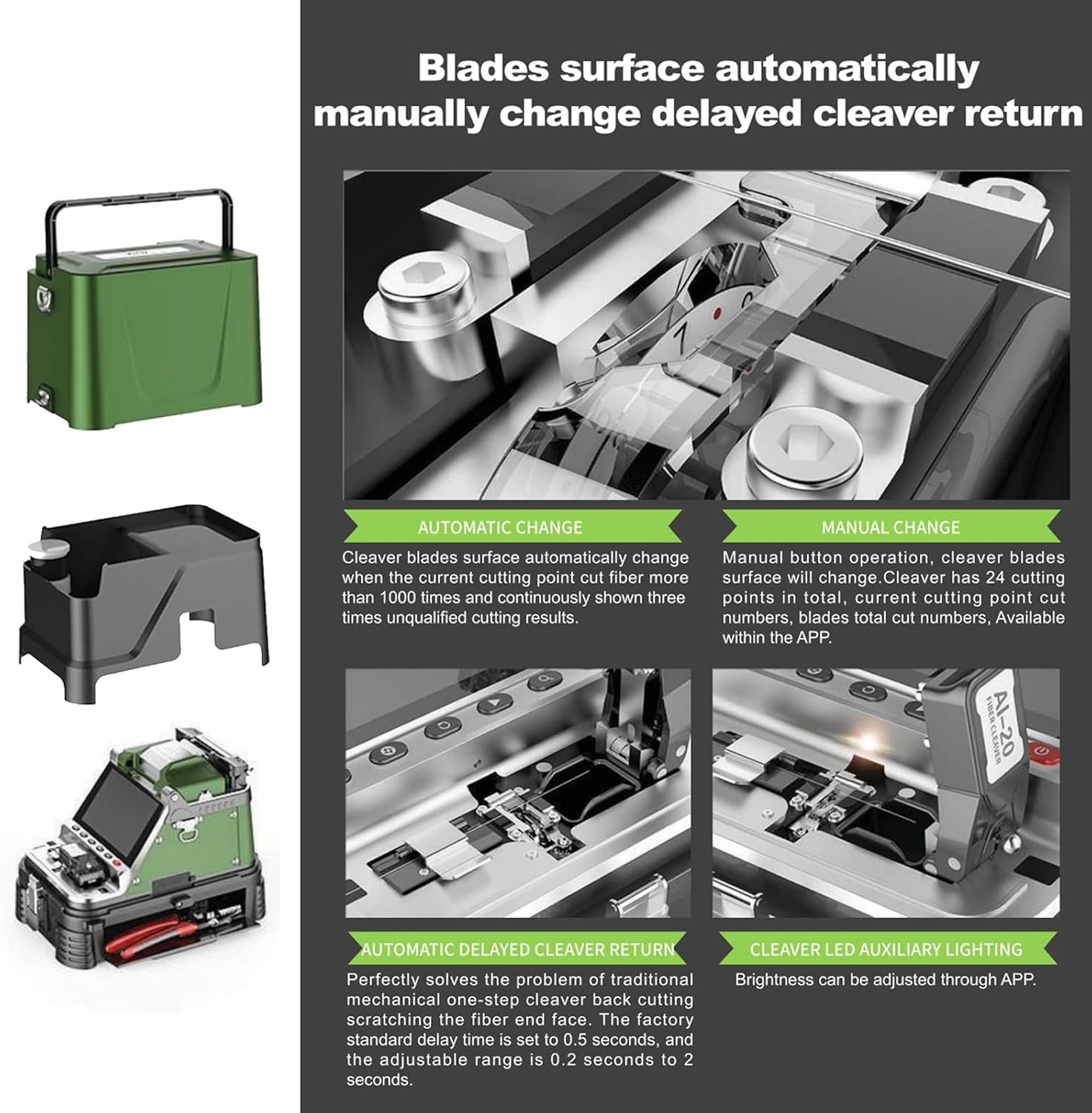 The Al-30, the fourth generation fiber fusion splicer developed by Signal fire, is the latest generation of fiber fusion splicer designed for full link integration.lt combines Signal fire's latest research and development of a delayed return electric one-step cleaver with fiber fusion splicing, while integrating OPM and VFL functions. Combined with a nine in one Signal fire fiber stripper, a combine work bench and worktable, it truly becomes a compact, lightweight, and easy to operate fiber fusion splicer,which will greatly improve your work efficiency.